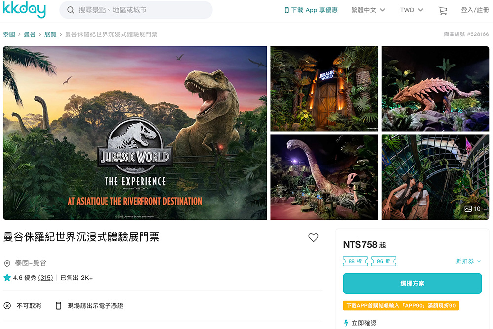 ▲曼谷侏羅紀世界每場有人數上的限制,要前往體驗時,建議直接在KKday網站上預約場次時段及訂購門票,KKday網站的購票模式簡單易懂,不用到現場排隊購票,而且,到現場後直接出示手機的憑證QR Code就可以入場,好方便。
