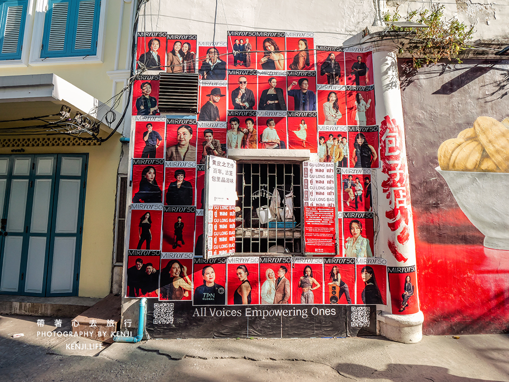 ▲在嵩越路不時的會常看到像這樣的貼滿懷舊海報的牆面,這些牆面都頗有特色,很多人也會特地來找這些牆面拍照,也讓我想到香港上環與中環的壁畫街、新加坡的哈芝巷,都有這類風格的壁畫街道,很酷,也超好拍照。