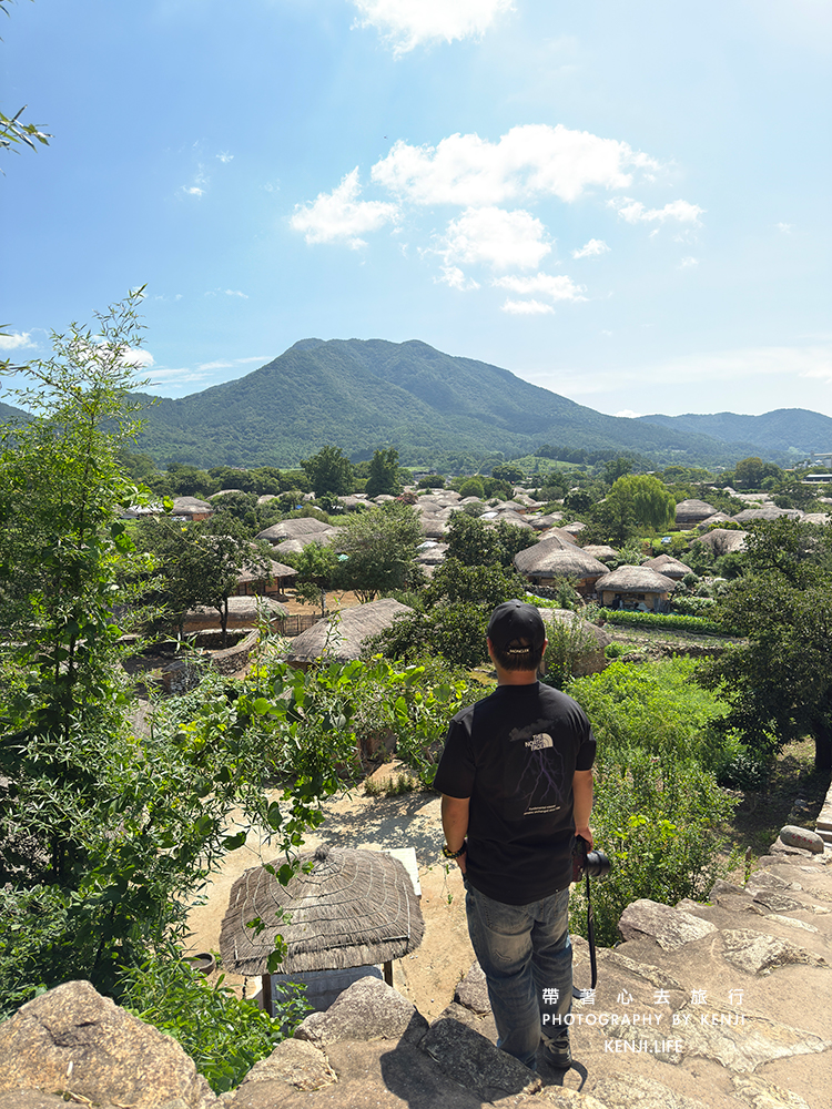 ▲就是這個角度!幾乎是以至高點的地方俯瞰整個樂安邑城民俗村!好壯觀啊!背景還有綠油油的山景為伴,終於再訪能夠順利補考之前殘念的景點啦!