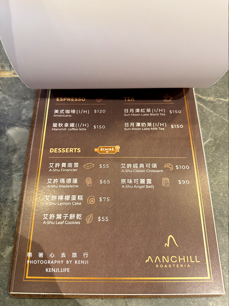 ▲我當天點了手沖咖啡:衣索比亞 班吉馬奇 果利藝妓 蜜處理的咖啡豆 $170元,以及艾許經典可頌 $100元,這天也是衝著拔絲可頌而來,可是當天沒提供,只好下次改天再找時間來品嚐了。