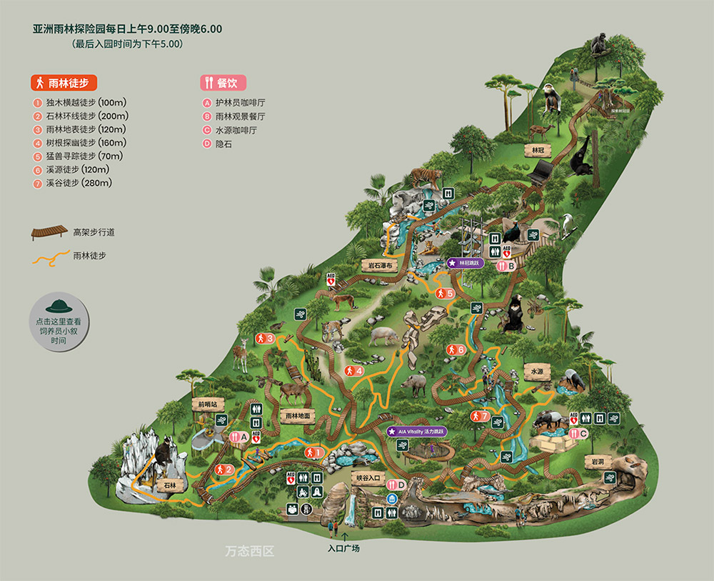新加坡全新開幕的亞洲雨林探險園是亞洲首座探險動物園,位在萬態野生動物世界裡,整個新園區多達八種不同探險區域,並打造多樣化的雨林步道及生態環境,可以近距離欣賞多種奇珍異獸,並以沉浸式來體驗雨林探險,從森林地表、林下岩石瀑布、樹冠層,一直到地下洞窟,感受全新園區帶來的新熱帶雨林生態及自然奇觀,還能體驗刺激的林冠跳耀、有趣好玩的活力跳耀,甚至想挑戰攀岩,來此亞洲雨林探險園都能體驗的到!